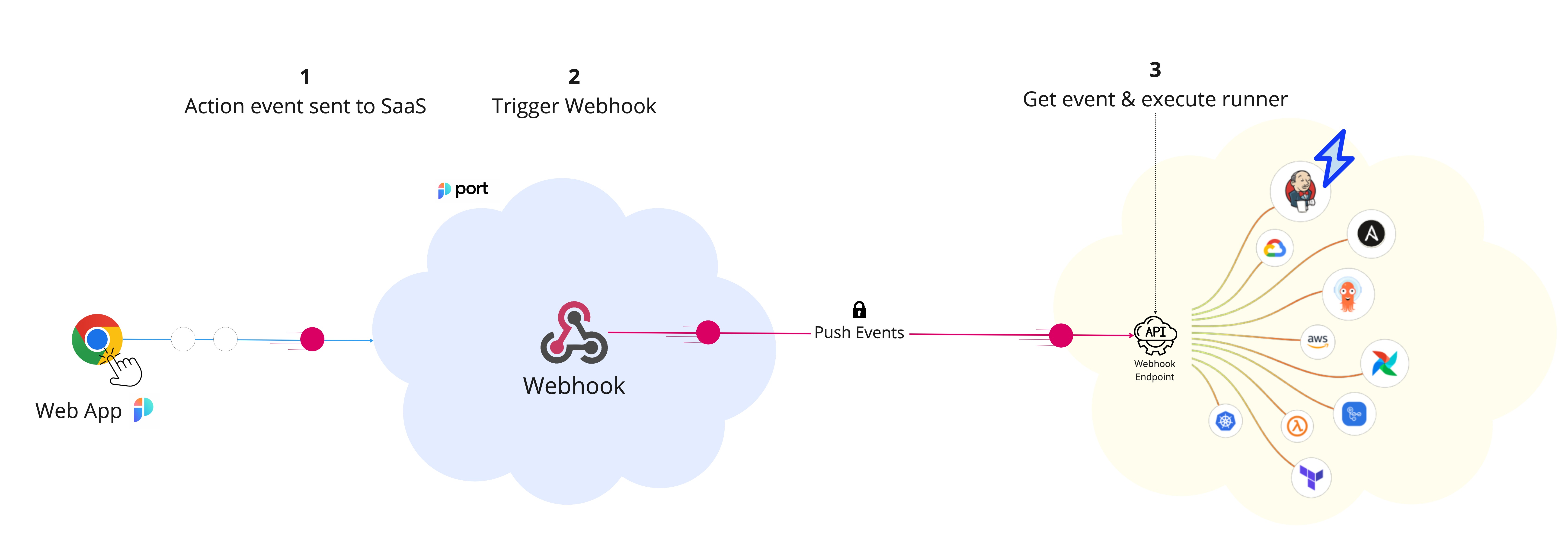 The Port execution agent provides you with a secure and convenient way to act upon webhook invocations of self-service actions and automations.
