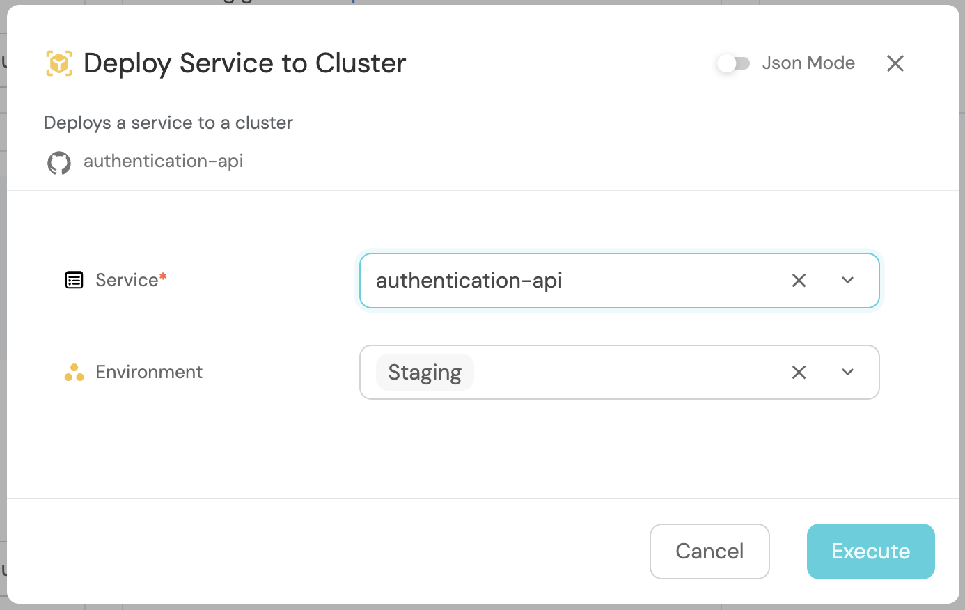 Go to the self-service page of your portal and create the following actions using the JSON definitions below: