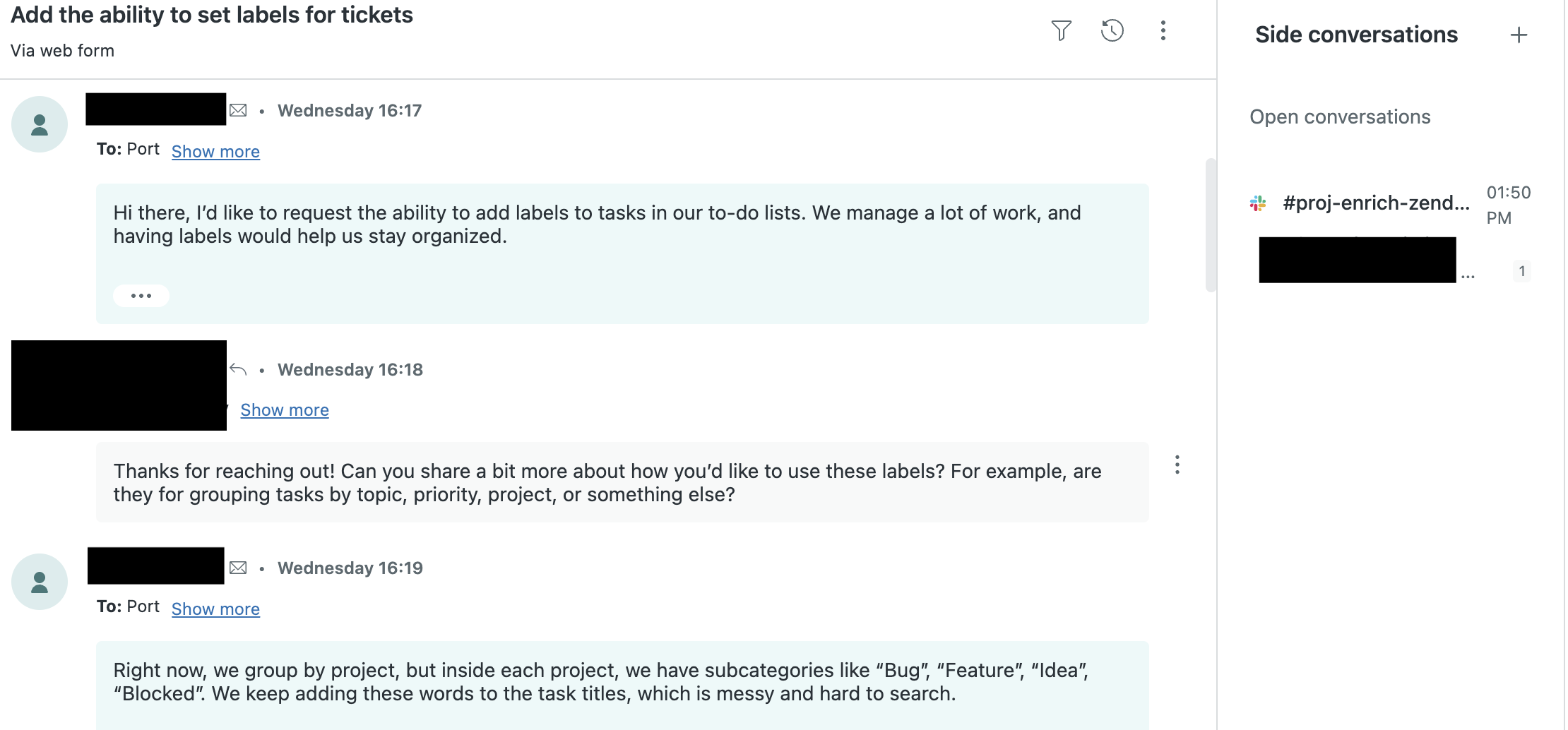 - 2025-08-13 13:12: Customer: "I want the ability to set labels for tickets"