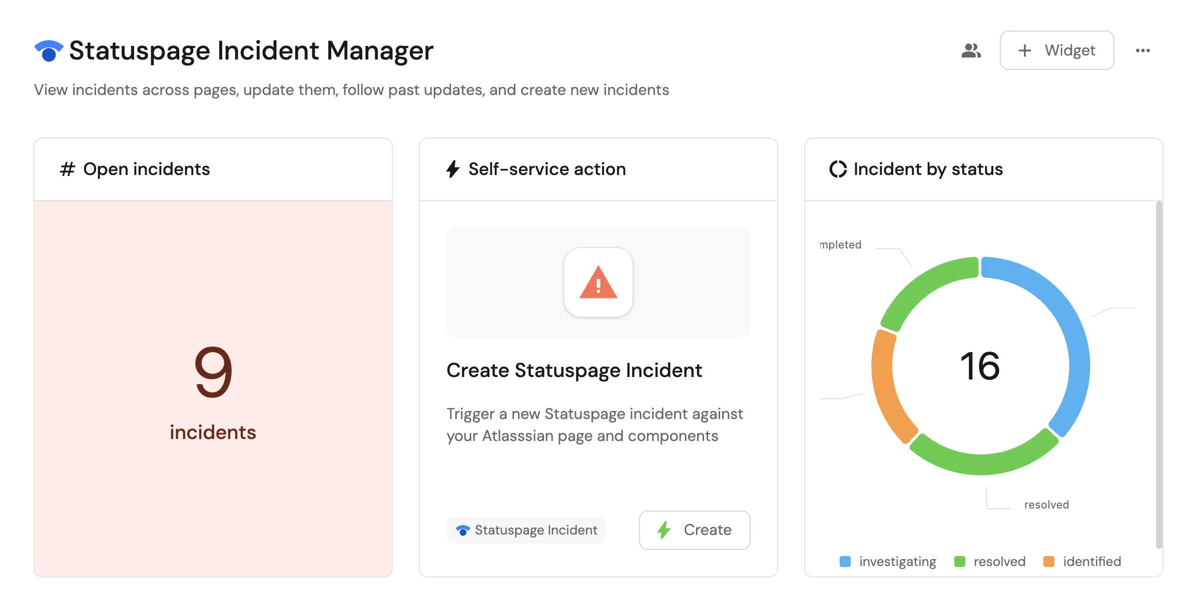 Incidents by status(add theStatusPageicon). -
