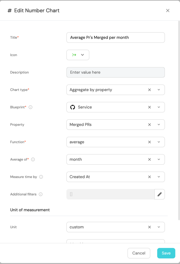 customas the Unit and inputPull Request merged per monthas the Custom unit.