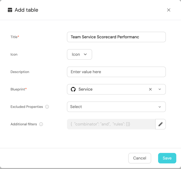Add the following aggregation property to the service and organization blueprints:Aggregation property (click to expand)
