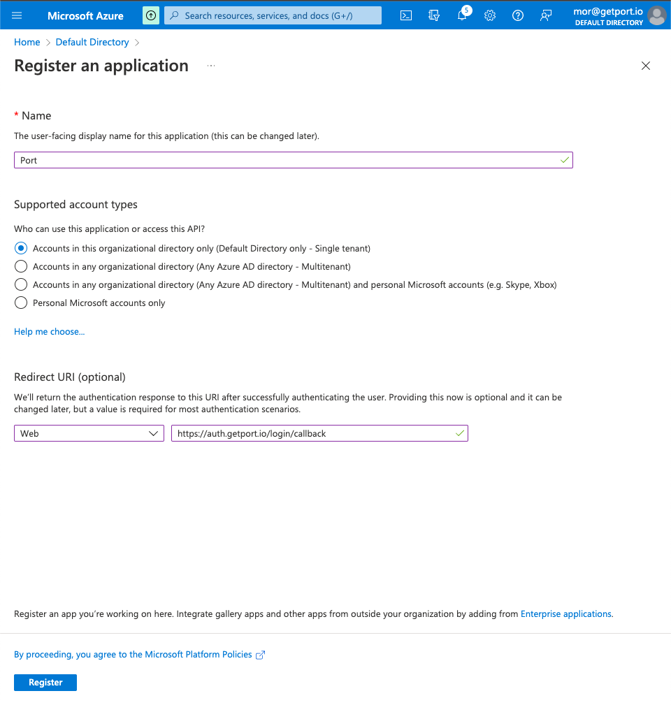 - Users can connect to Port via an AzureAD app.