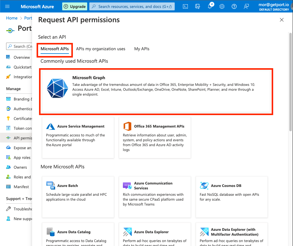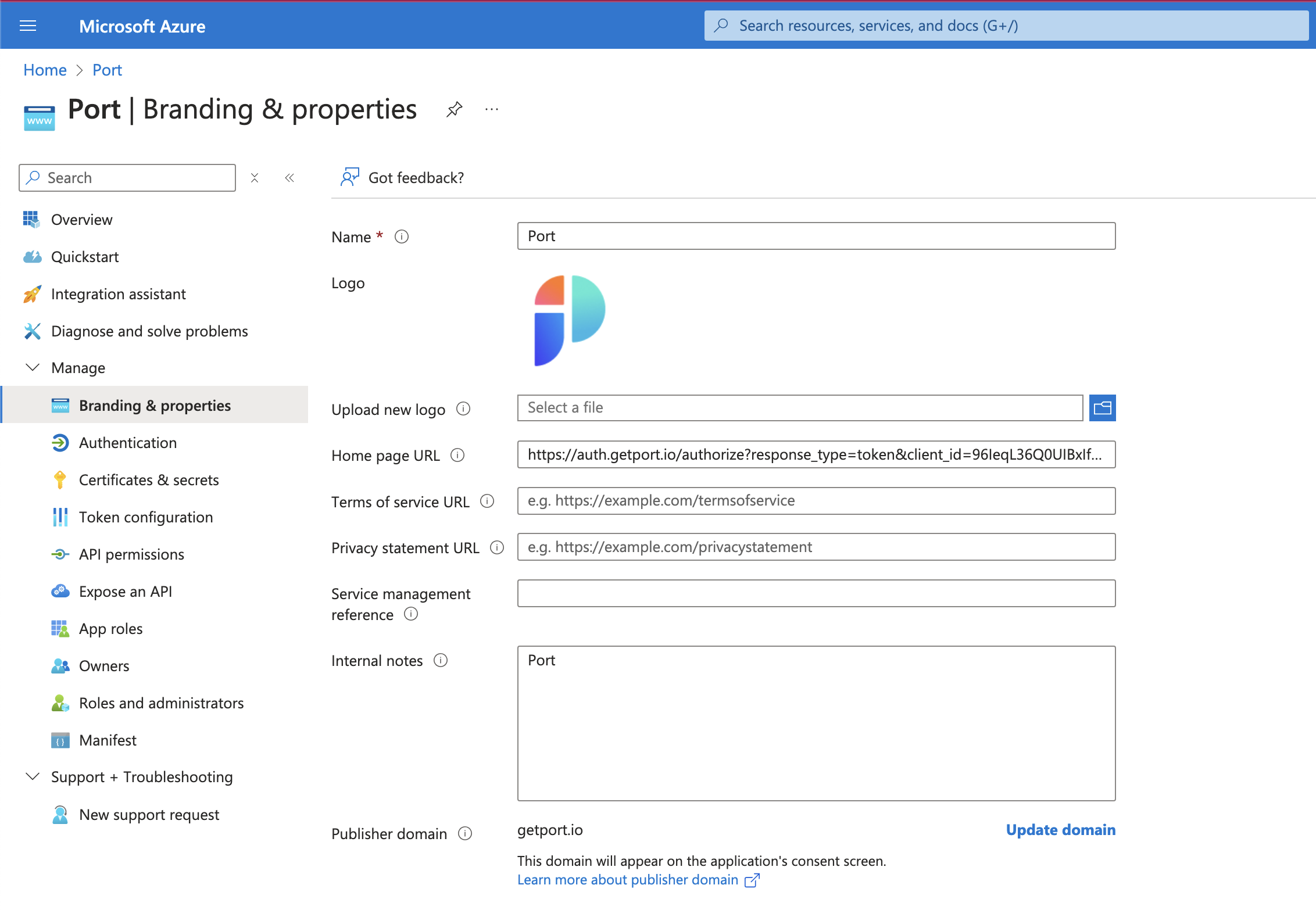 Emailfield in Azure AD. - Contact information ready to share with Port support team for the final configuration steps.